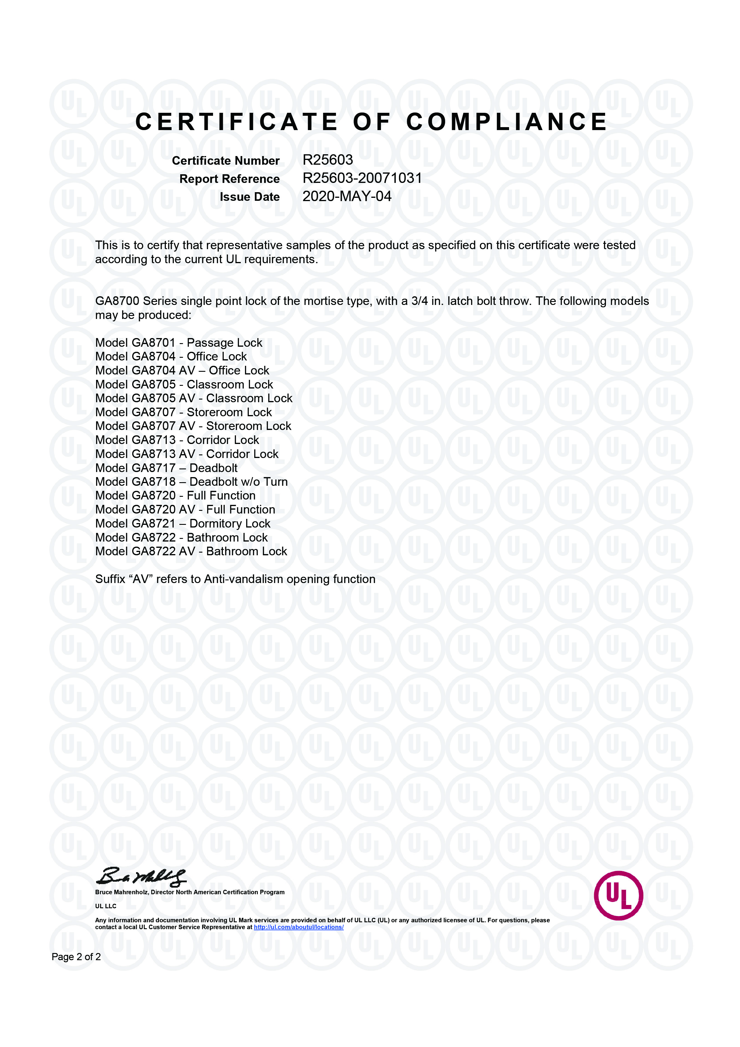 浙江堅迪五金制造有限公司始建于 1995 年。自 2003 開始,公司致力于高標準商業(yè)鎖的研發(fā)工作,并于 2006 及 2007 年,8700 插芯鎖系列獲得美國國家標準 ANSI A 156.13-2005 一級、ANSI A 156.2-2003 二級和美國 UL 10C3 小時防火測試認證。自 1998 年以來,公司不斷提升產品和客戶服務品質,并獲得了 ISO 9001 的認證。